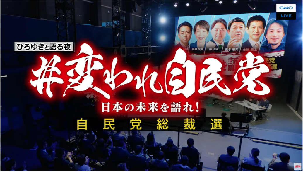 このリリースでは、「GMOグローバルスタジオ」が自民党総裁選候補者による公開討論会の会場・配信拠点として選定され、ライブ配信の技術面・運営面で支援を行ったことが紹介されています。